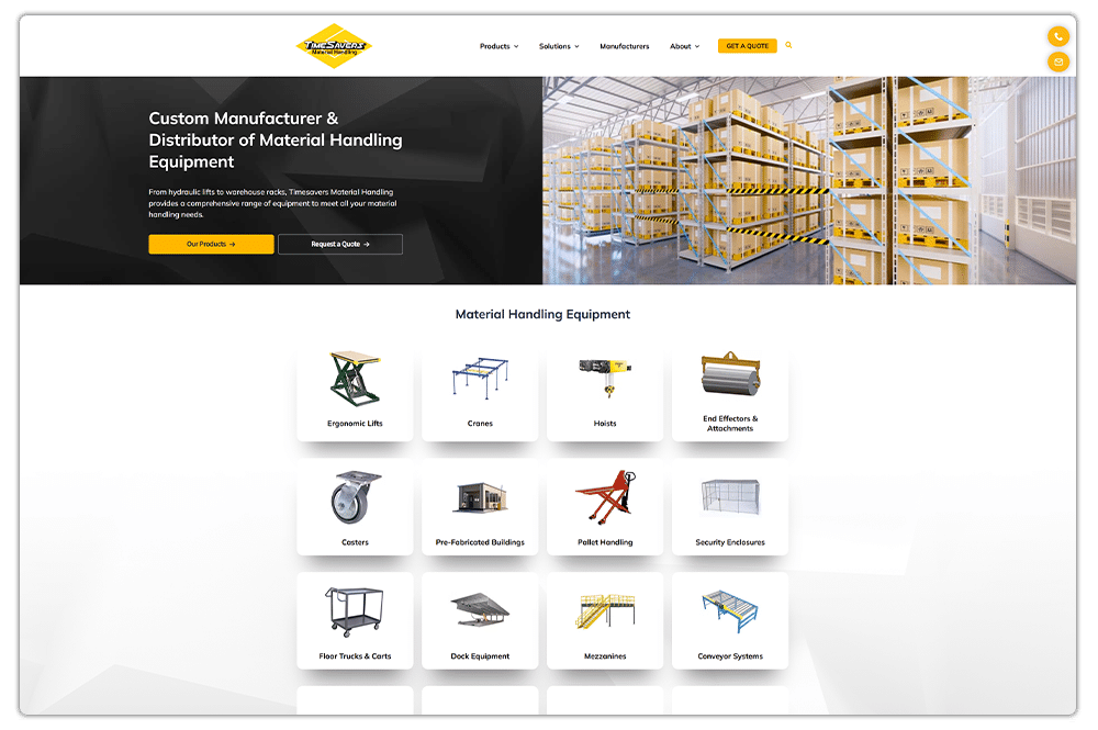 TimeSavers Material Handling’s digital evolution demonstrates the TotalWeb Partners difference: a turnkey process that transforms complex product catalogs into optimized, lead-generating assets.